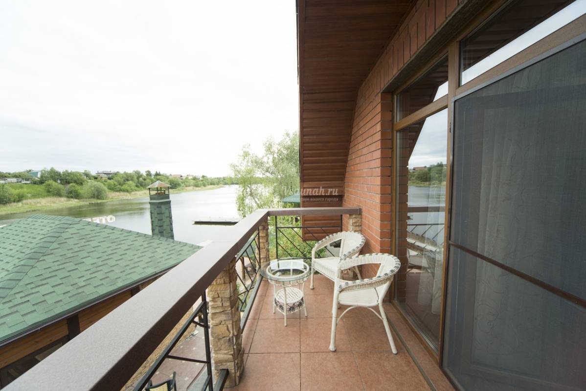 Обновлённый двухкомнатный домик с сауной и кухней на первом этаже, двумя балконами, один из которых с видом на реку.